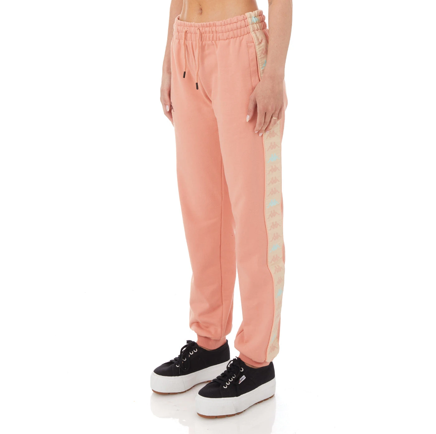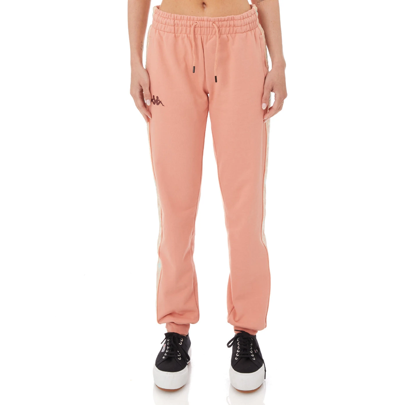 Womens sweatpants in french terry. REGULAR FIT. Omini logo tape with piping down side, printed logo on front. Textile Composition: Cotton 80%, Polyester 20%.