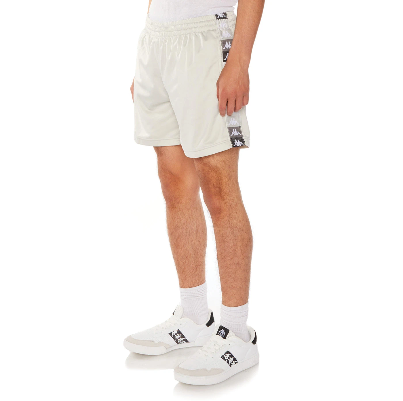 - Logo tape with piping, waistband with elastic inside and drawcord, two front pockets, one back zipped pocket