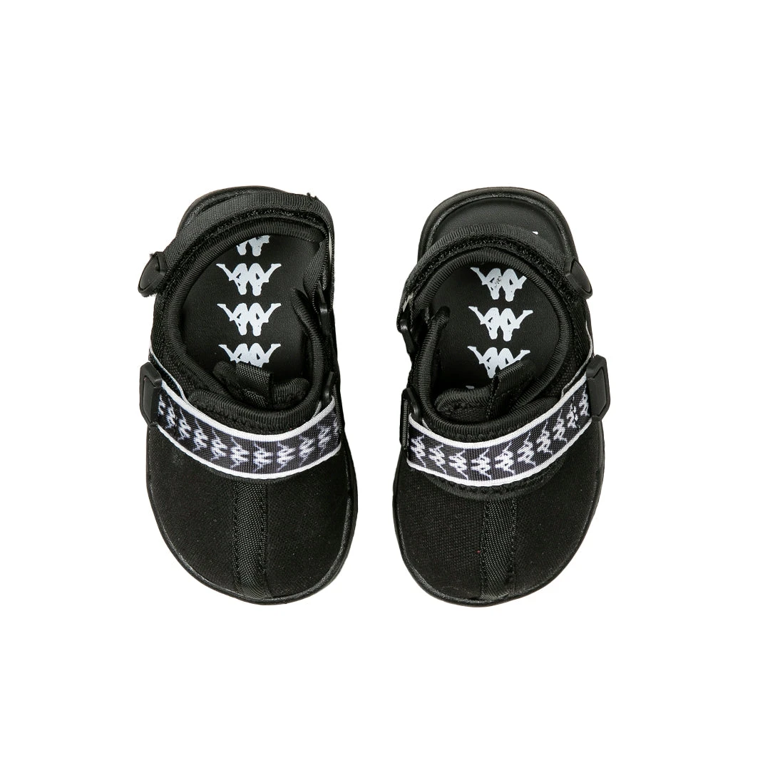Infants sandals. Upper in polyester cordura, synthetic material PVC outsole. Strap closing and 222 banda on upper. Fabric: Polyvinyl Chloride 100%
