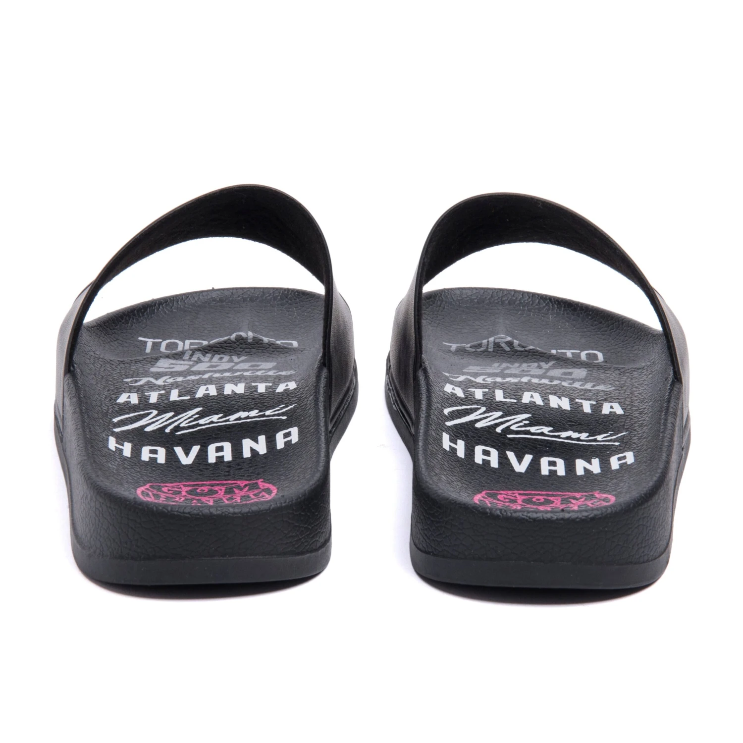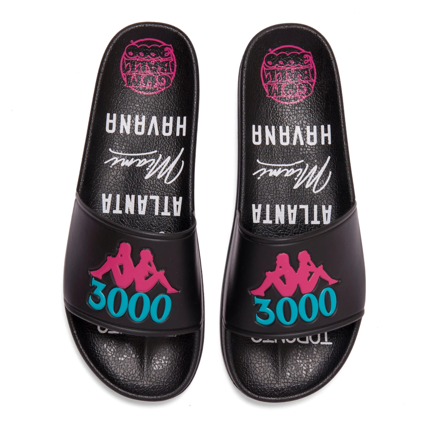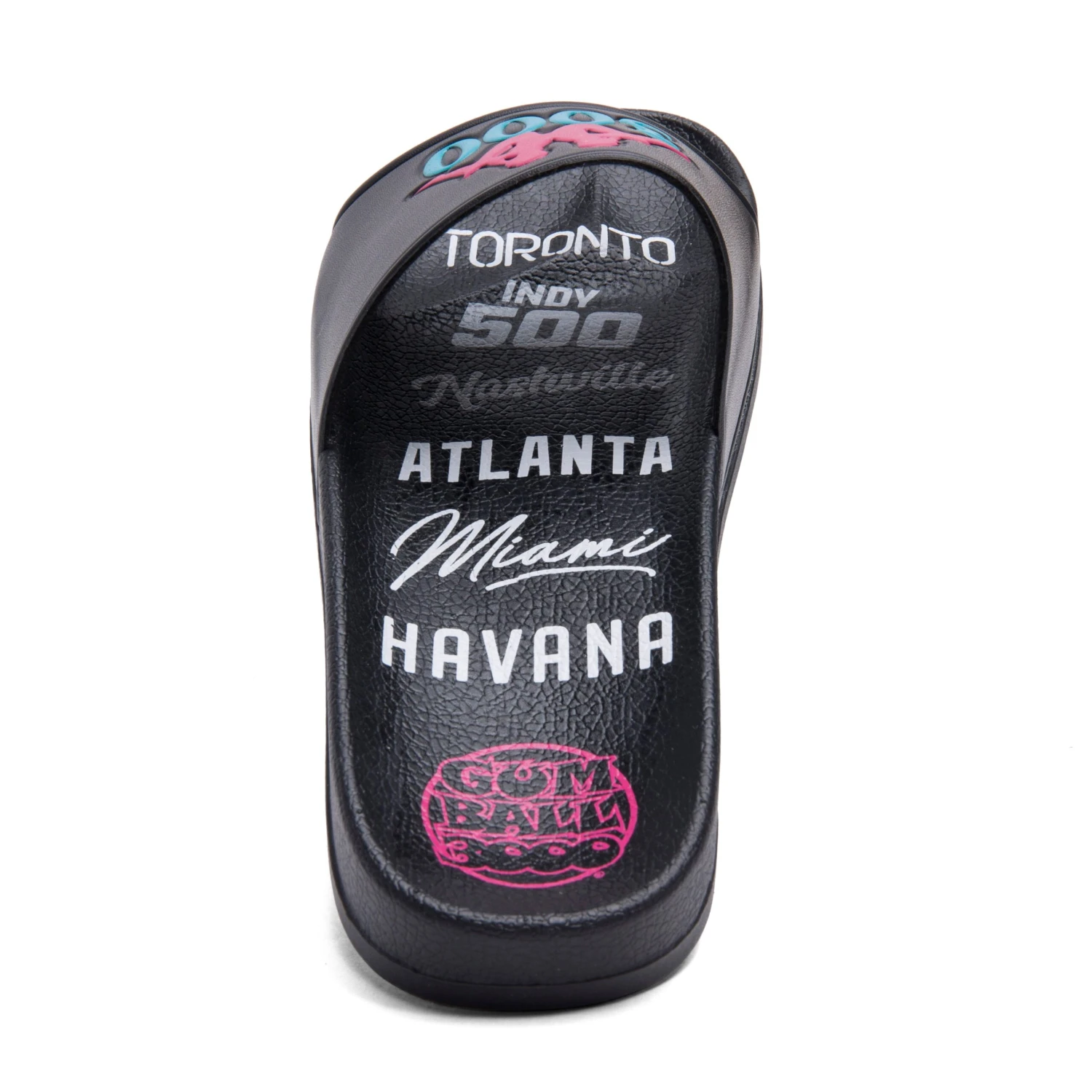 Unisex slides. Upper in synthetic material PU, PVC outsole. Authentic Omini logo printed on right upper, Gumball 3000 logo printed on left upper. Textile Composition: Polyvinyl Chloride 100% Textile: Not encoded Part: Outsole (0) Poliuretane 100% Textile: Not encoded Part: Upper (0)