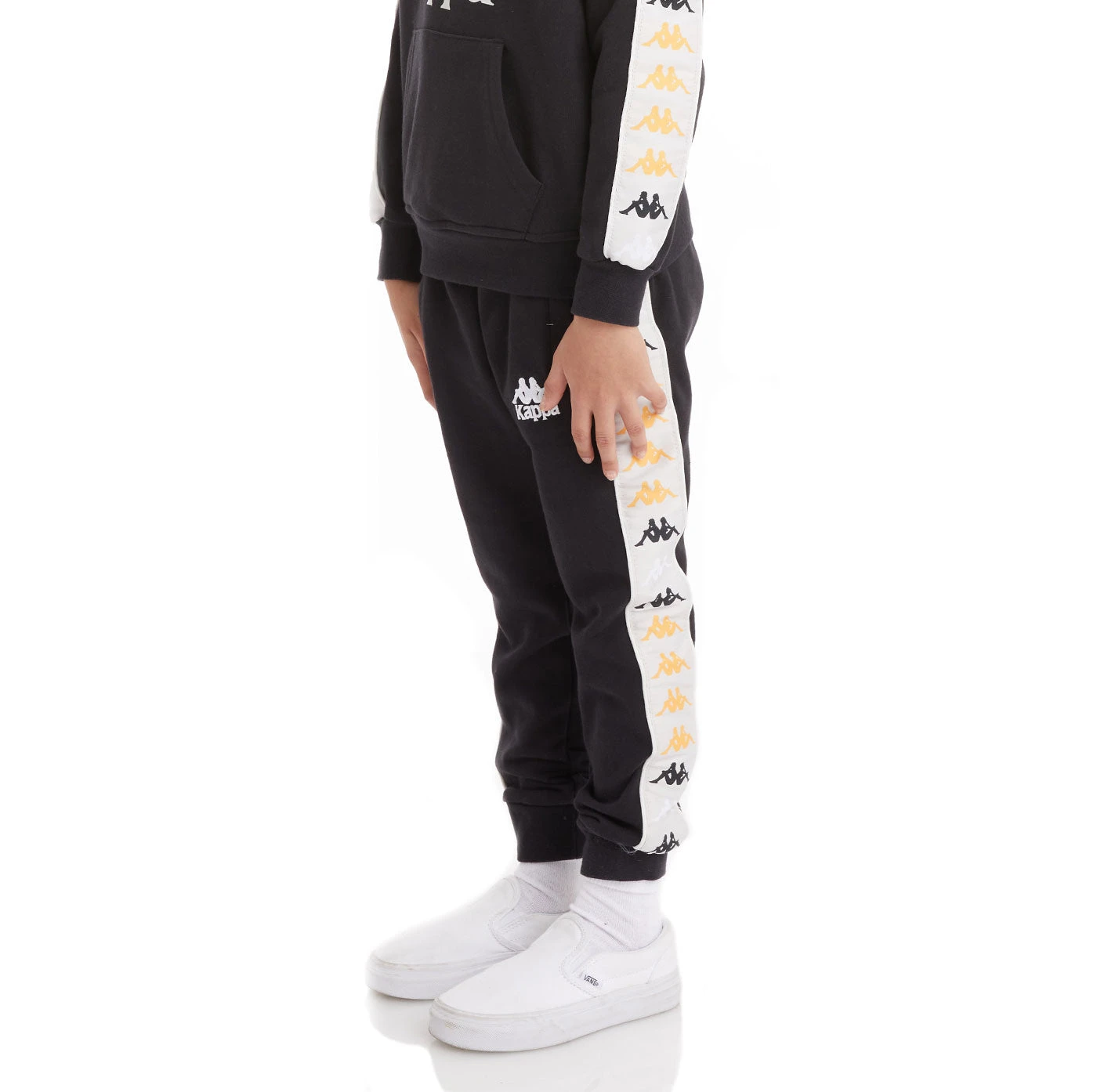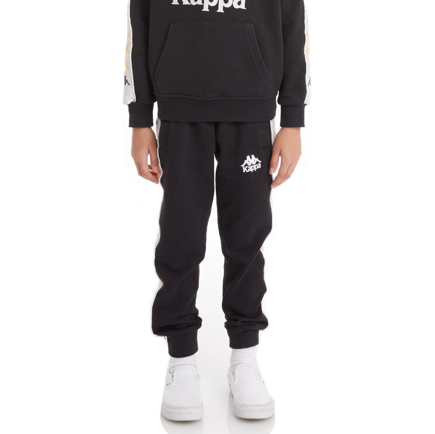 Kids sport trousers in french terry. REGULAR FIT. Jacquard Omini logo tape with piping, side pockets and zipped pocket on back, embroidered logo. Textile Composition: Cotton 80% – Polyester 20%
