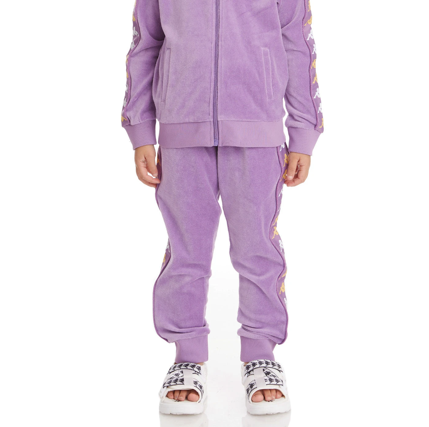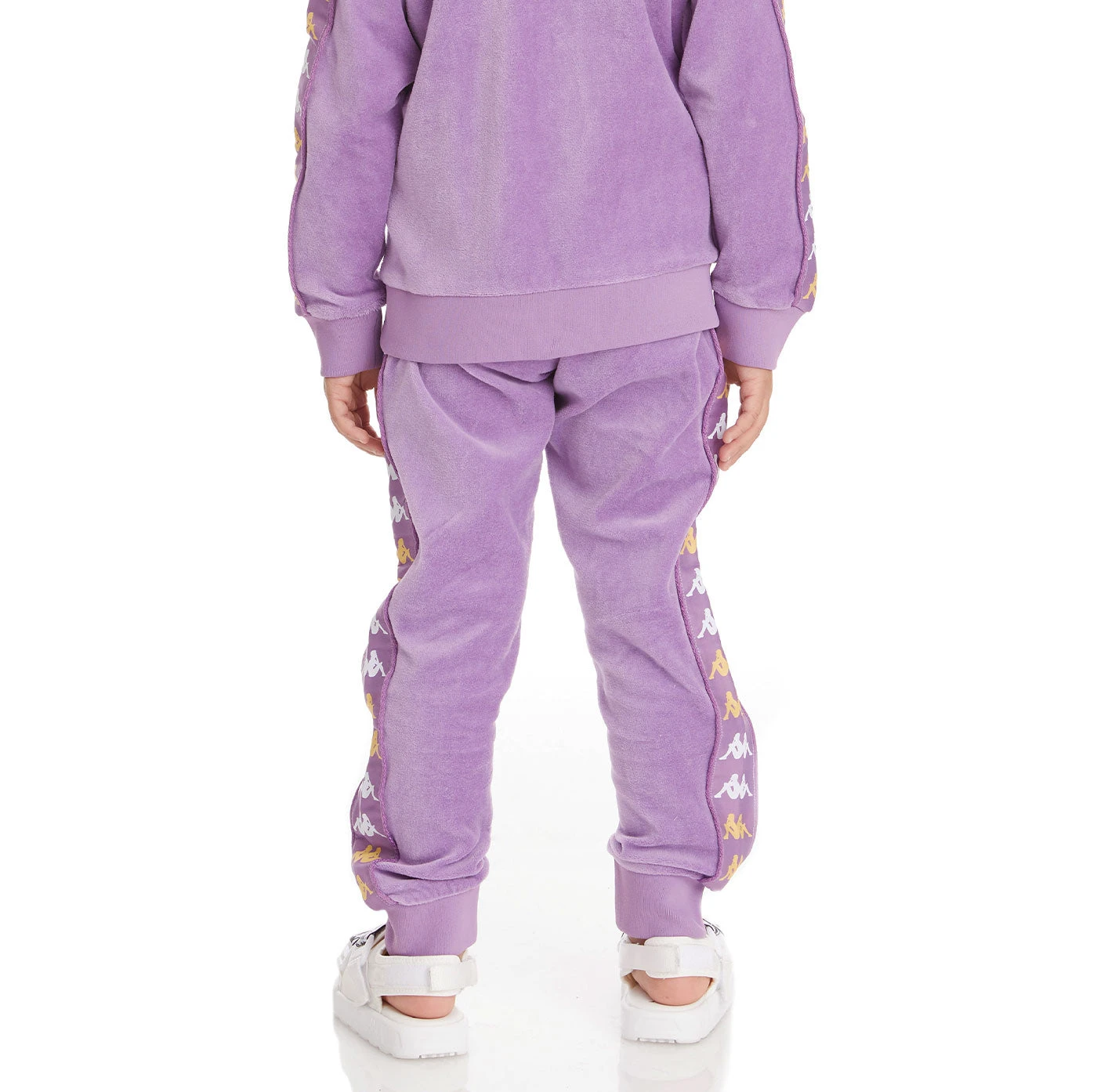 Kids sport trousers in velour REGULAR FIT. Jacquard Omini logo tape with piping, side pockets and zipped pocket on back, embroidered logo. Textile Composition: Cotton 75%, Polyester 25%’