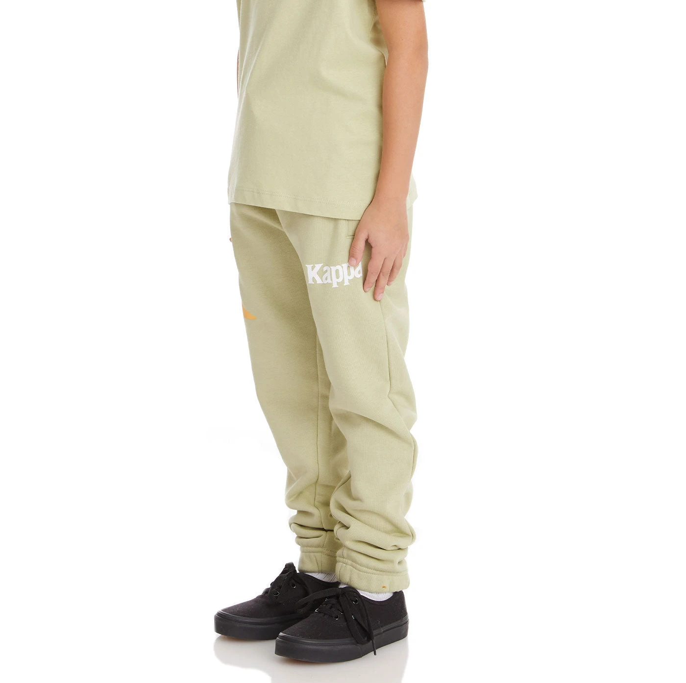 Kids pants in french terry. REGULAR FIT. Side pockets, back zipped pocket. Omini logo printed on side, Kappa lettering printed on front.