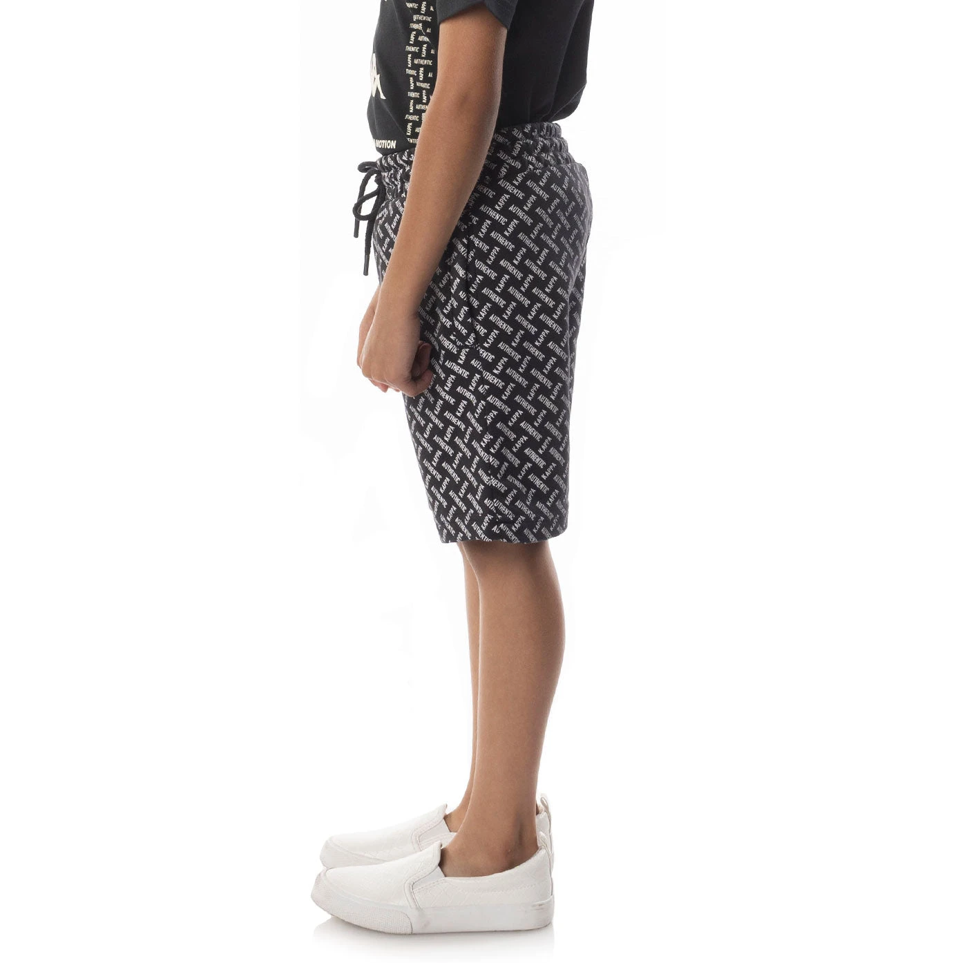 Kids shorts in french terry. REGULAR FIT. Two side pockets and one back pocket. Elasticated waistband with external drawcord. Allover print. Textile Composition: Cotton 80% – Polyester 20%