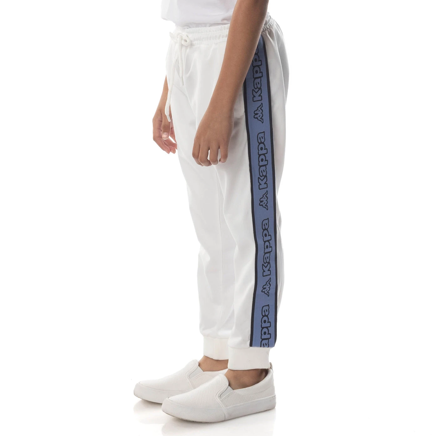 Kids trackpants in polyester fleece fabric. REGULAR FIT. Side pockets, rib on cuffs and waist. Logo Tape applied on the side. Omini Logo embroidered on leg. Textile Composition: Polyester 100%