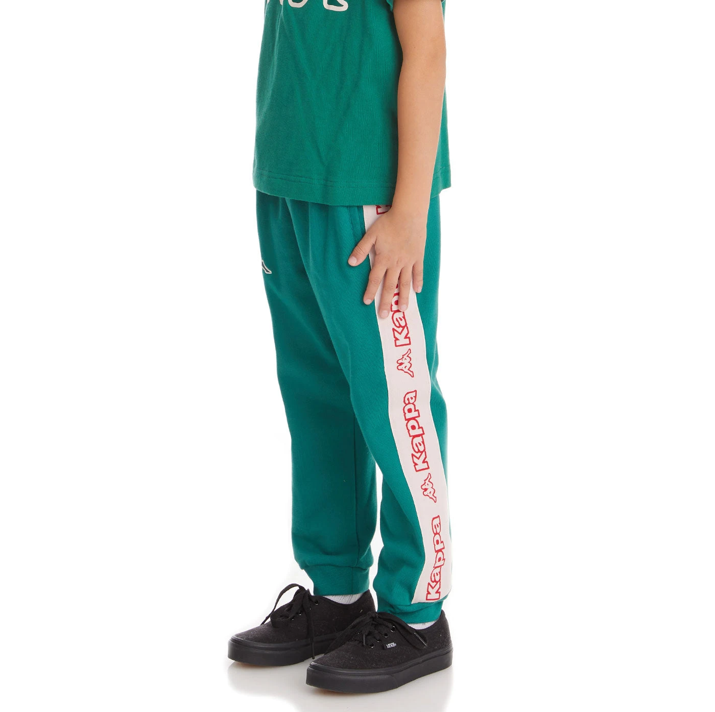Kids pants in french terry fabric. REGULAR FIT. Ribbed bottom, elasticated waist and side pockets. Logo Tape applied on the side. Omini Logo embroidered on leg.