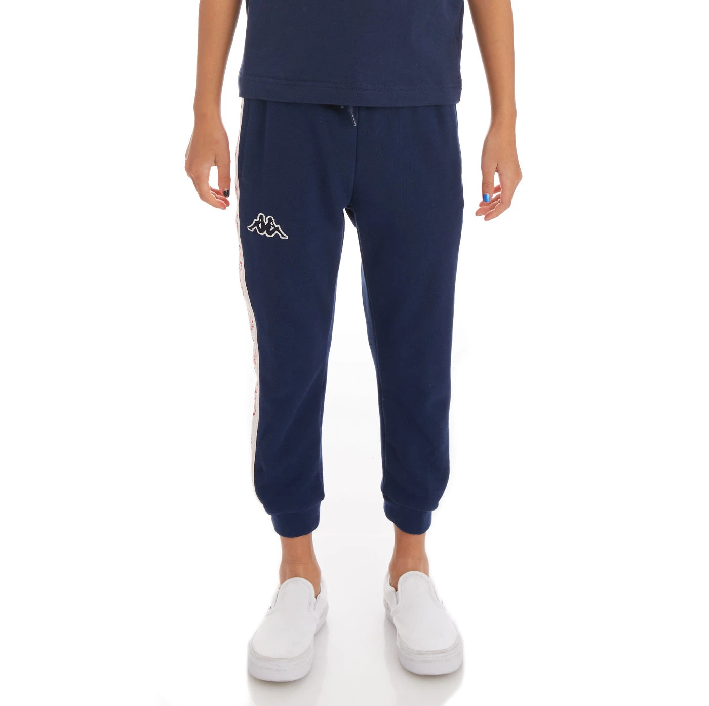 Kids pants in french terry fabric. REGULAR FIT. Ribbed bottom, elasticated waist and side pockets. Logo Tape applied on the side. Omini Logo embroidered on leg.