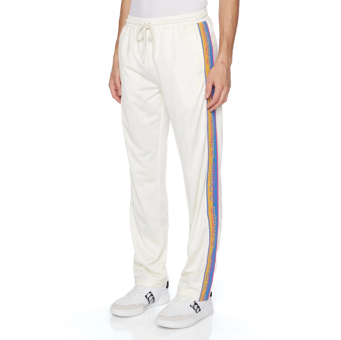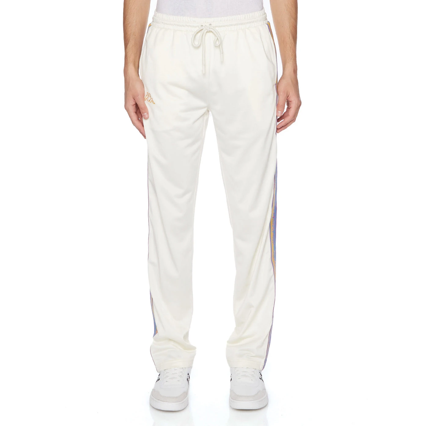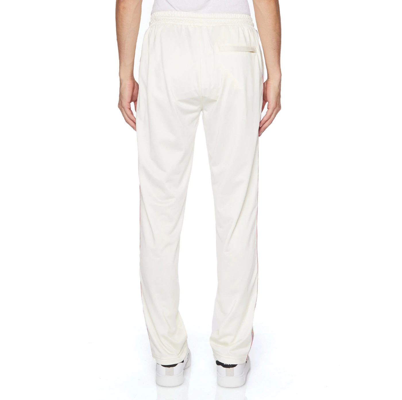 - Logo tape with piping, elastic waist band with elastic inside and drawcord, two front pockets, one back zipped pocket