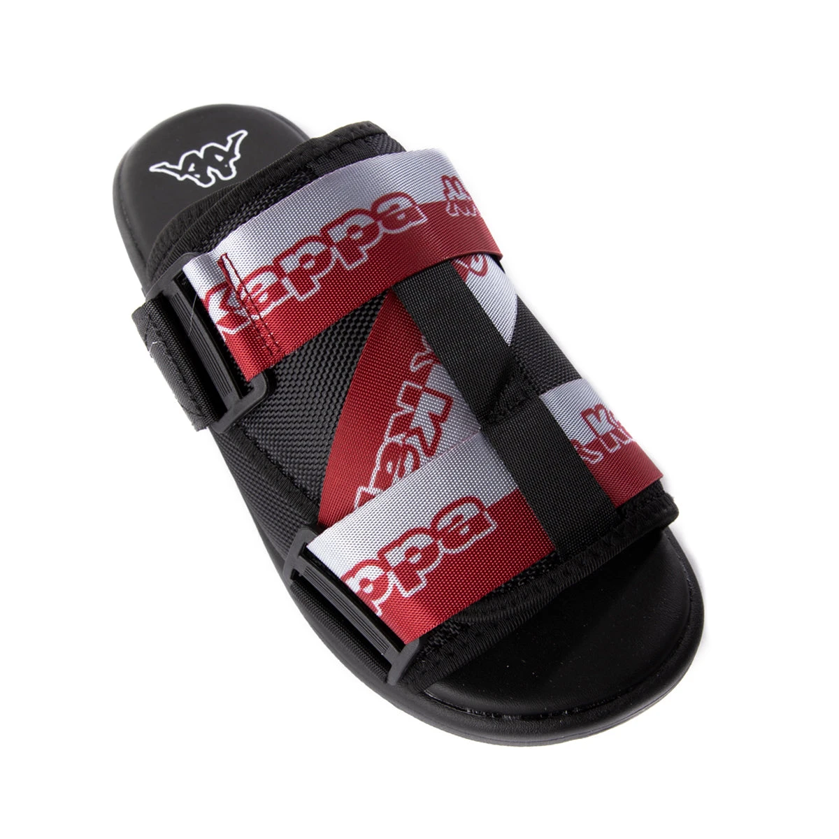 SPORT.Unisex SANDAL Upper in nylon, synthetic material PVC outsole. Strap closing with Banda with Omini logo and kappa lettering repetition on upper, Omini logo printed on footbed. Textile Composition: OUTSOLE – Polyvinyl Chloride 100%; UPPER – Nylon 100%